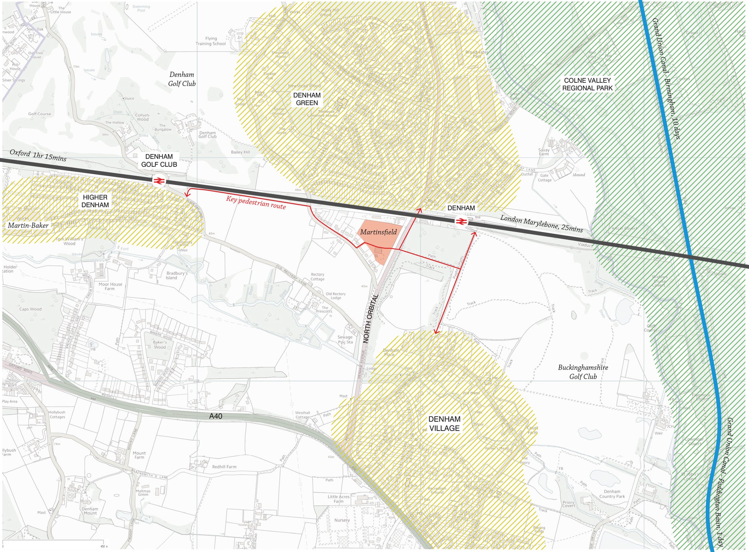 From the early 1960s until 2016 Martinsfield was the home of the only well maintained outdoor playing pitches in Denham, providing for football, cricket and an indoor social and sports facility. Initially developed for the employees of the Martin-Baker Company, by the early 2000's it had opened up for use by the whole community. Due to funding issues and extensive vandalism the Club Building was demolished and the facilities remained empty and unused from 2016.